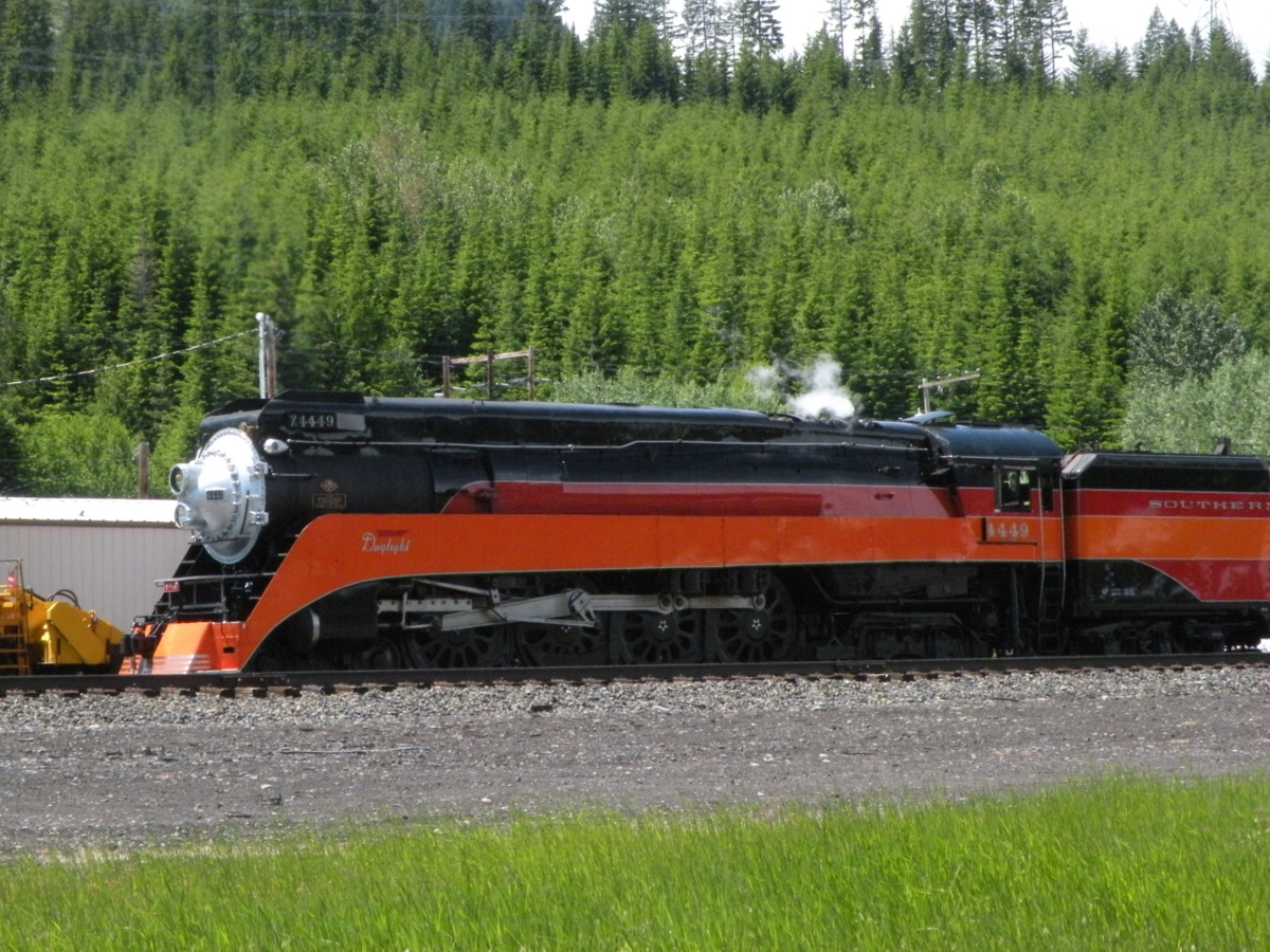 As part of Cascade Rails 2011 (the National Railroad Historical Society’s annual convention) in Tacoma, WA, the group chartered ex-SP 4449 and train for a trip over Stampede Pass on Saturday, June 25. This was the culmination of a week of various tours and charters to railroads and museums around the Puget Sound area, much like that of an NMRA or PNR convention. Despite leaving Tacoma about 30 minutes late, it appeared that all on board weren’t too bothered with the delay. The train ran up the BNSF Seattle Subdivision to Auburn, where they turned east onto the Stampede Sub for the trip over the pass to Easton.
