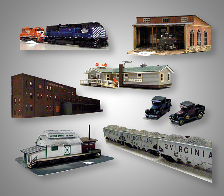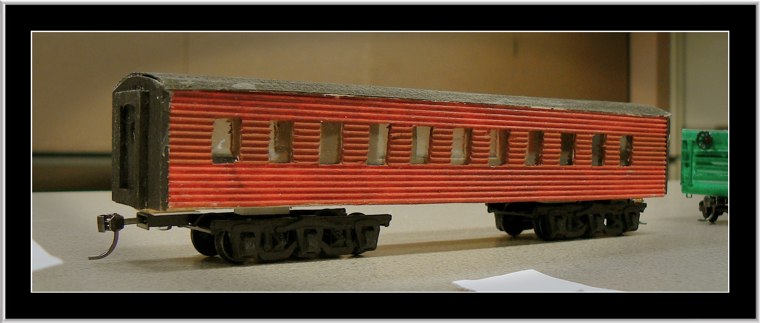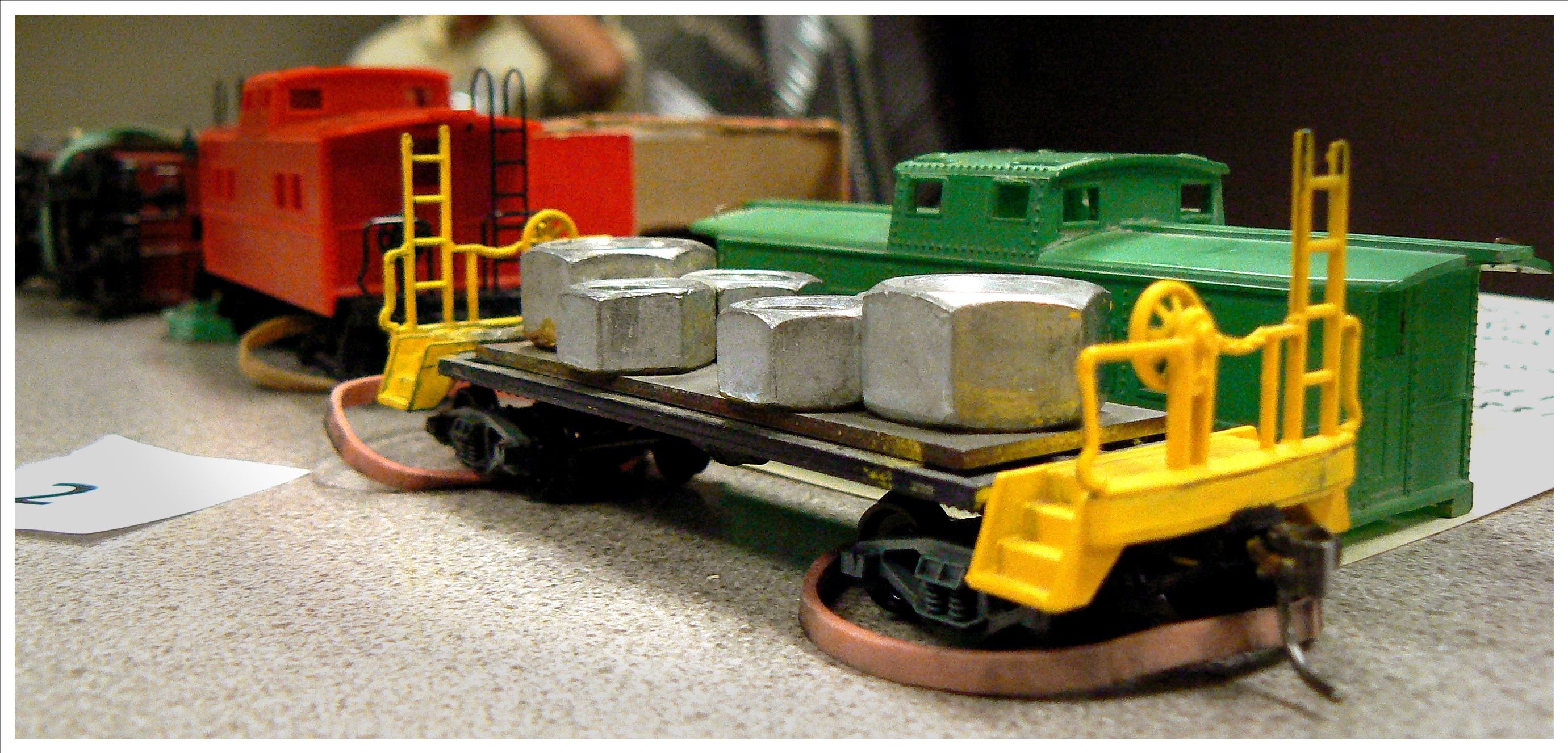 Walt Huston brought a long N scale auto boxcar and a bay window caboose. Gene Swanson a LaBelle kit old time gondola, Dale Kraus a ready to run 0-6-0 from Bachmann that was kit bashed into a 0-6-0T. Jim Murrey brought a building flat, John Pritzlaff Hardware Co made from DPM brick modules, the building flat is part of his Milwaukee Road passenger station scene. John Miller had 4 hoppers two those Varney models and a pull toy.