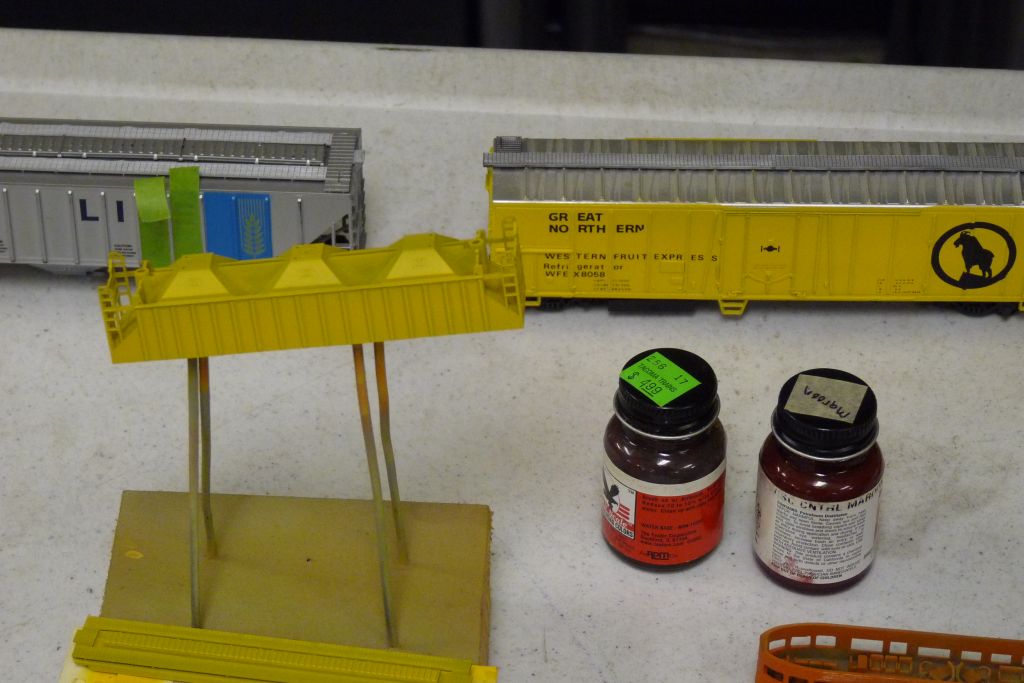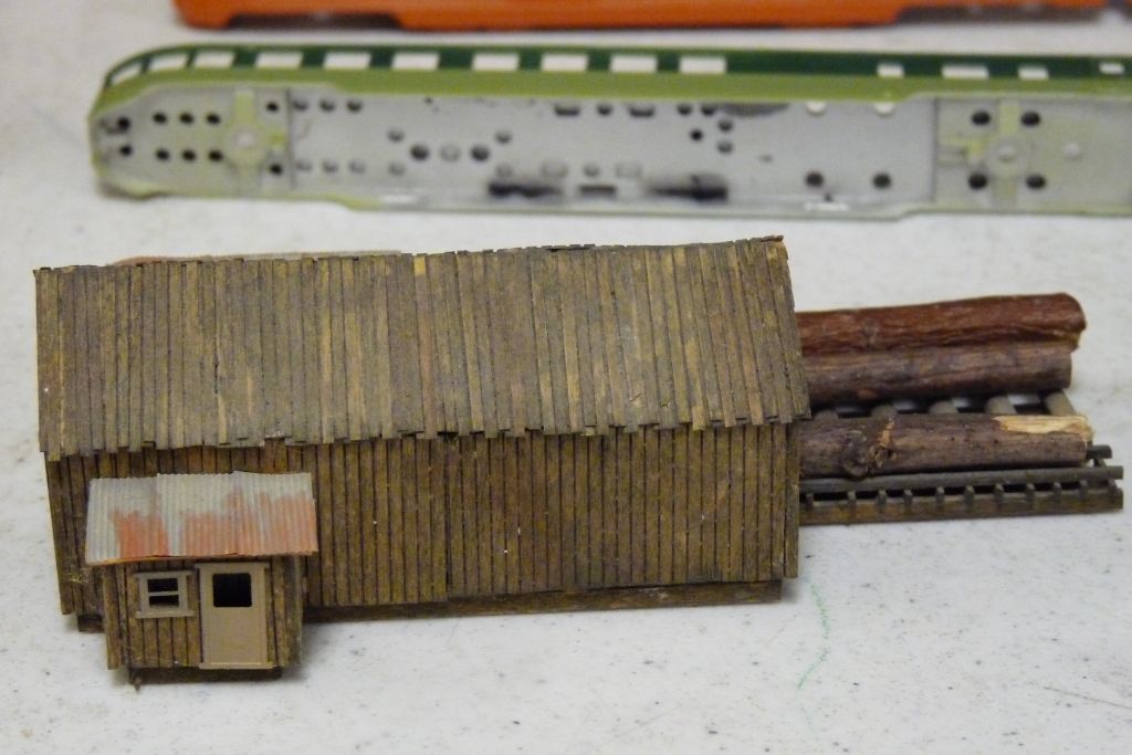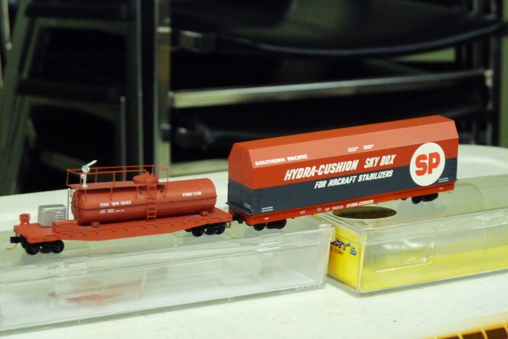 Once again, Show and Tell brought out some interesting stuff. Dennis had his T-TRAK modules there to show progress and hopefully inspire others to get out of their armchairs and start modeling. Chris had several paint projects in both HO and N. Stu had a nice little N sawmill with interior detail. And Rob had the latest MicroTrains fire car and an SP sky box.