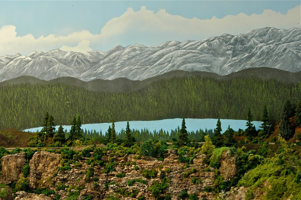 HO scale Matheson & Western Railroad fills a 13’ x 23’ garage/room in a two-deck arrangement. Lots of mountain scenery.