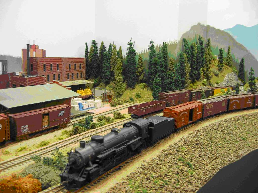 S Scale Monon Railroad that fills the basement. Super layout. Excellent Midwestern scenery with hills and streams sets a beautiful backdrop for steam and diesel operations. DCC power with sound.
