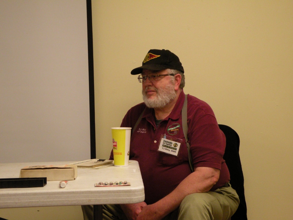 After the break, Russ Segner presented the clinic, which was an update on what’s happening at the Northwest Railway Museum in Snoqualmie through a slide/video show. There has been quite a bit of progress since last June when Eastside held a picnic at the museum. Weyerhaeuser #1, the Fairbanks-Morse, has been pretty much completed and is now awaiting lettering. There has been much progress on Chapel Car #5, the “Messenger of Peace,” and the museum has a paid staff on hand to oversee the work being done on the car. Russ himself is continuing work on coach #218, a 1912 built Barney-Smith car. A lot of work has gone into this car, and the train crew is looking forward to adding it into the regular service. The other big news is that two items from the museum collection – WRL caboose #1 and GN caboose #001 – have been moved into the new Train Shed at the Railway History Center. These are the first exhibits to be housed in the Train Shed with many more to follow. (These cabooses were moved in Thursday afternoon between School Train runs and Russ had pictures of them to show us that night.) Russ reminded everyone that anyone who is interested in restoring equipment, teaching kids about railroading or even operating the railroad can volunteer at the museum. He will keep us up-to-date as progress continues.